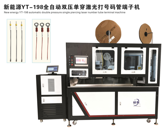 • 新能源YT-198全自動(dòng)雙壓?jiǎn)未┘す獯蛱?hào)碼管端子機(jī)